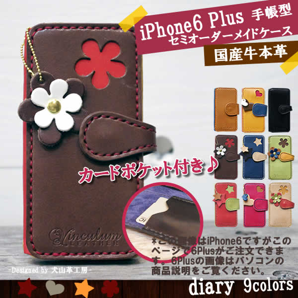 iphone 6 plusケース 手帳型 レザー 本革 ハンドメイド かわいい
