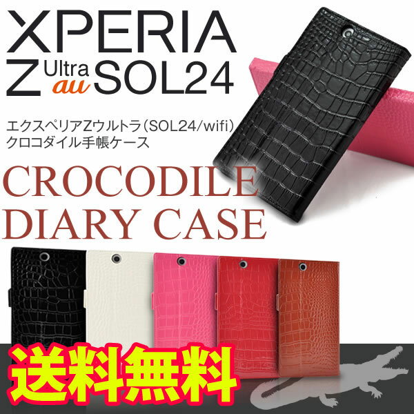 Xperia Z Ultra SOL24 クロコダイル手帳ケース wifiモデル/エクスペリア Zウルトラ/エクスぺリア/ゼット/スマホケース