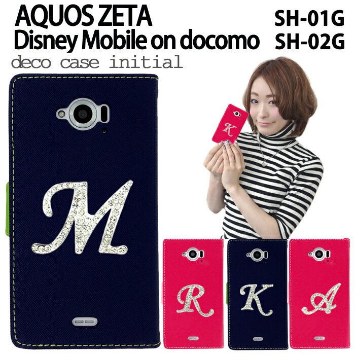 AQUOS ZETA SH-01G SH-02G デコ手帳型ケース カバー 2トーン イニシャル SH-01G SH-02G SH01G SH02G AQUOS ZETA アクオス AQUOSZETA ゼータ SH-01Gケース SH-01Gカバー SH-02Gカバー SH-02Gケース ダイアリー デコ レザー ケース カバー 手帳 Disney Mobile on docomo